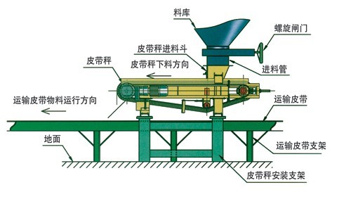 料溜槽(該溜槽在安裝時不得與皮帶秤發生接觸)。圓盤供料時要求料流集中,料流沿皮帶秤送料方向斷面不大于200mm,料流在皮帶秤上的自