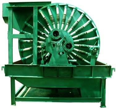 該產品為上部給料的筒型外濾式真空永磁過濾機,主要適用于對較粗顆粒強磁性物料的脫水。 筒體內部裝有鍶鐵氧體永久磁系,可促使磁性顆粒迅速吸附到濾布表面,磁濾機主要用于粒度較粗的強磁性礦物精礦礦漿的脫水,由于是上部給料,使得濾餅中精礦按粒度分層的效果更加明顯,當磁性精礦形成濾餅時,顆粒同時受到重力和磁力的作用,粗顆粒精礦比細顆粒精礦向濾布運動的快,精粒首先接觸濾布,故濾餅的透氣性好,而且礦漿中磁性顆粒在磁力吸引下呈放射狀布于圓筒表面,并由于磁系極性變化而產生磁攪動作用,這都成為濾餅易脫水的有利條件,使得濾餅厚且透氣性好,顯著的提高了生產率,與同規格的筒形真空過濾機相比,其效率提高三倍以上。 該機礦漿中固相顆粒的比磁化系數不低于3000*10-6厘米/克,顆粒粒度為0.15-0.8毫米。給料濃度≥60%。