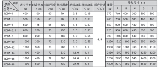 RCDA系列風(fēng)冷懸掛式電磁除鐵器采用風(fēng)機(jī)強(qiáng)迫風(fēng)冷,操作簡(jiǎn)單、使用方便,用于破碎機(jī)前及輸送機(jī)上的任何物料除鐵,對(duì)輥壓機(jī)、破碎機(jī)、立磨等機(jī)械設(shè)備起著可靠的保護(hù)作用。配用電源:KGLA-50A/500V。